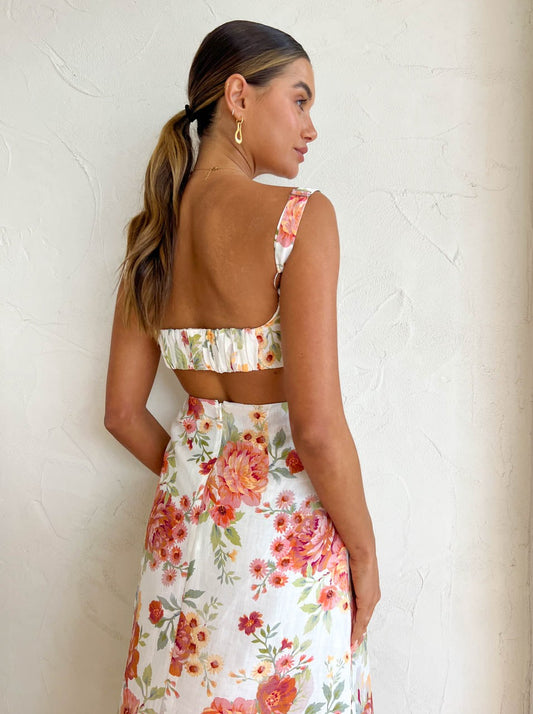 Sofia The Label Delilah Cut Out Midi Dress in Sunset Floral