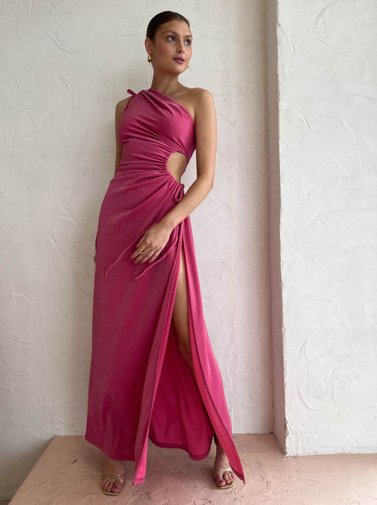Add a touch of shimmer to your Coco wardrobe with the Sonya Nour Maxi Dress in Fuchsia Shimmer.