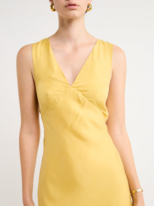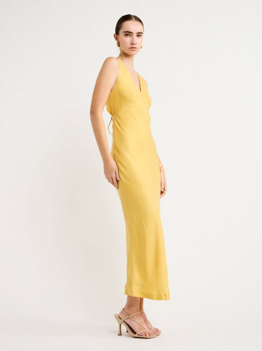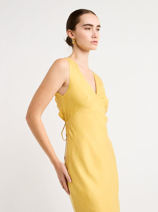 Crafted from a luxurious drapey cupro blend, this slip dress features a skimming fit with a V-neckline, front empire seams with bust darts, and a cutaway back with delicate lace-up details