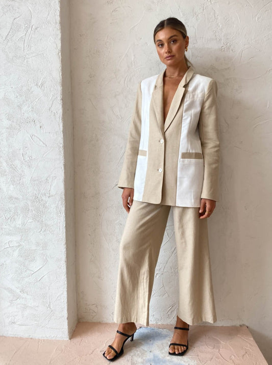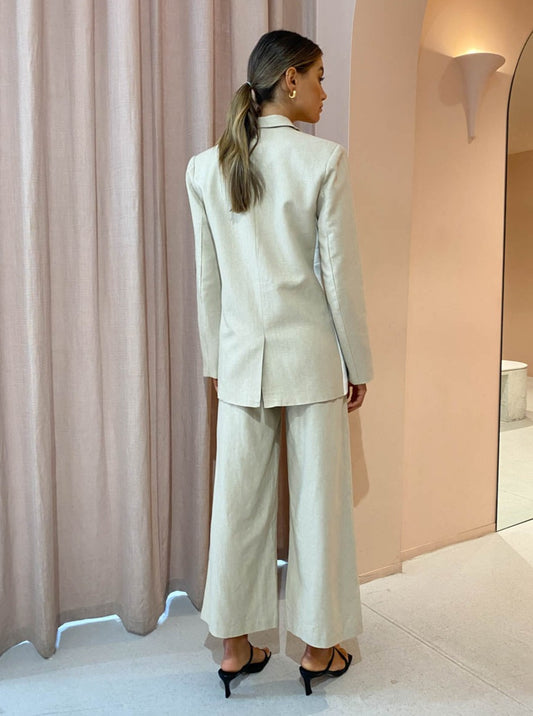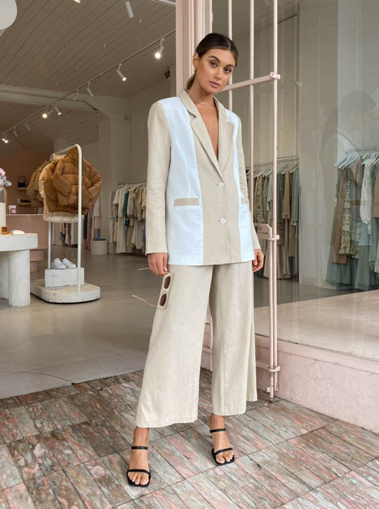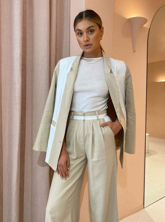 Complete the look with the Friends with Frank Bianca Top in Cream and Alohas Slip on Cross Sandals in Ivory or elevate the look with the matching Sovere Divide Blazer in Vanilla CreamAlias Mae Cassie Heel in Black, Reliquia Boyfriend Chain in Gold and Porter Horn Hoops in Gold