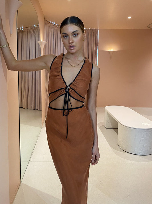 Embrace the change of seasons with the tonal elegance of Sovere Studios Encore Dress in Copper.