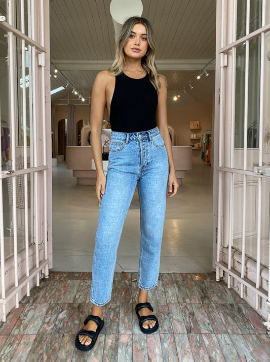 Coco Styling Tip: We think this rib knit bodysuit is the perfect laying piece. Layer under the Camilla and Marc Betty Jean in Light 90's Wash