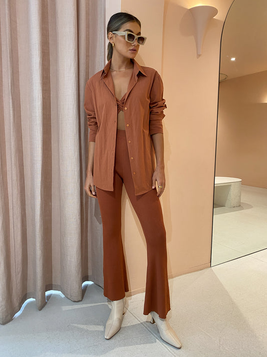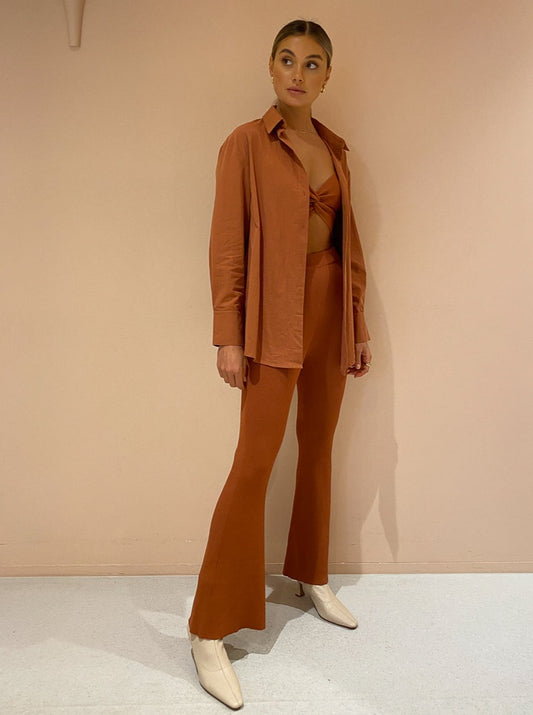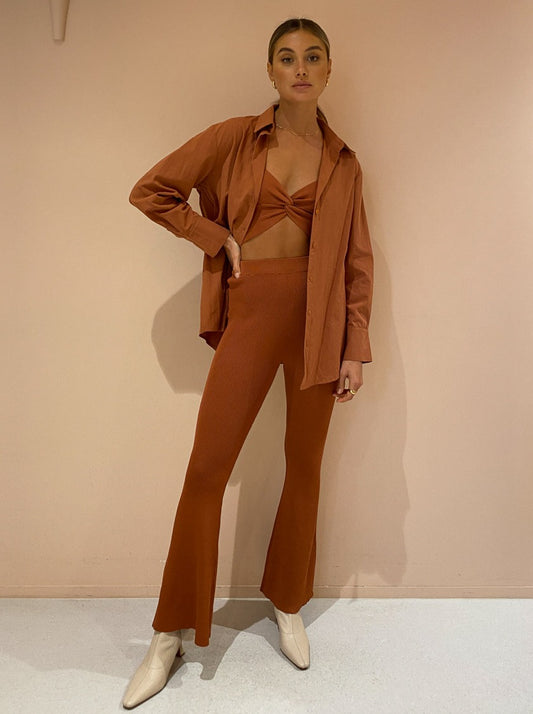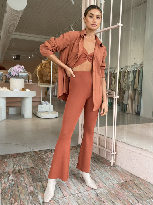 The Order Knit Pant in Ember by Sovere Studios form and flatter in all the right ways.