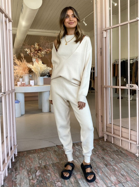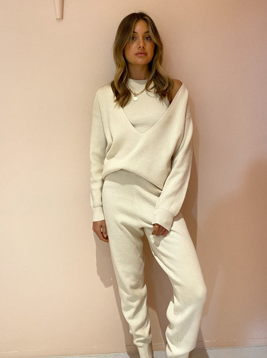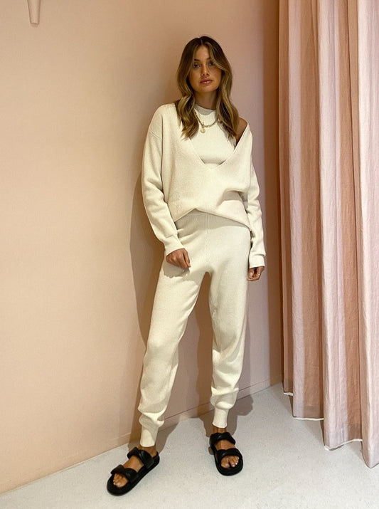 Elevate your Coco off-duty luxe leisurewear in the Sovere Solace Knit Lounge Pant in Almond.
