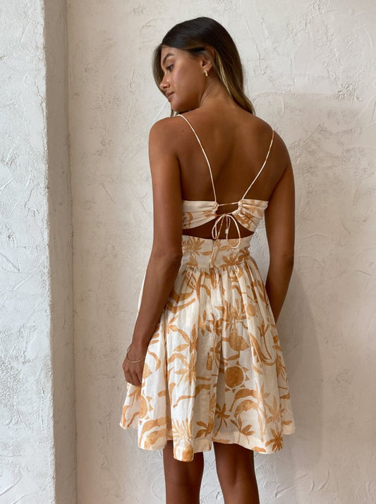 Awaken your inner Summer styling with the Leila Dress in Sand Palmette by Steele.