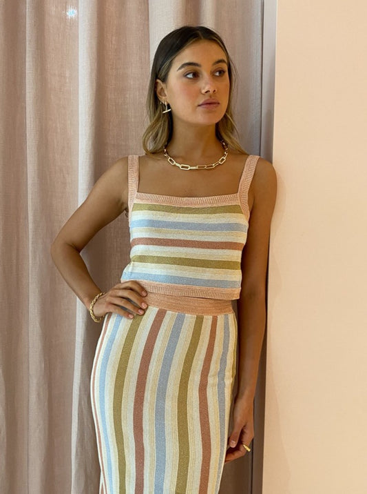 The SUBOO Isabel Knitted Crop Top in Nude Metallic is the perfect piece to bring into your Coco wardrobe for those sun drenched days and balmy nights.