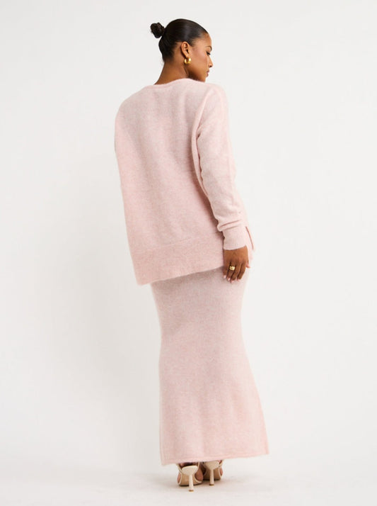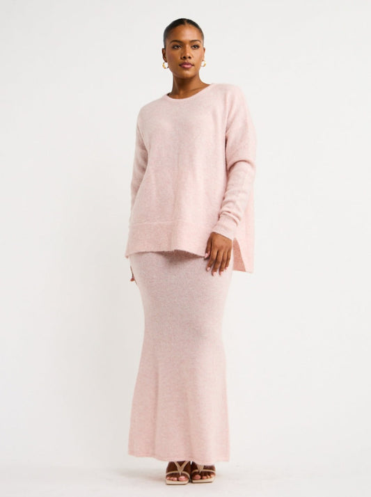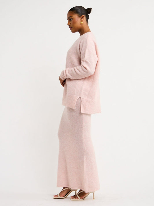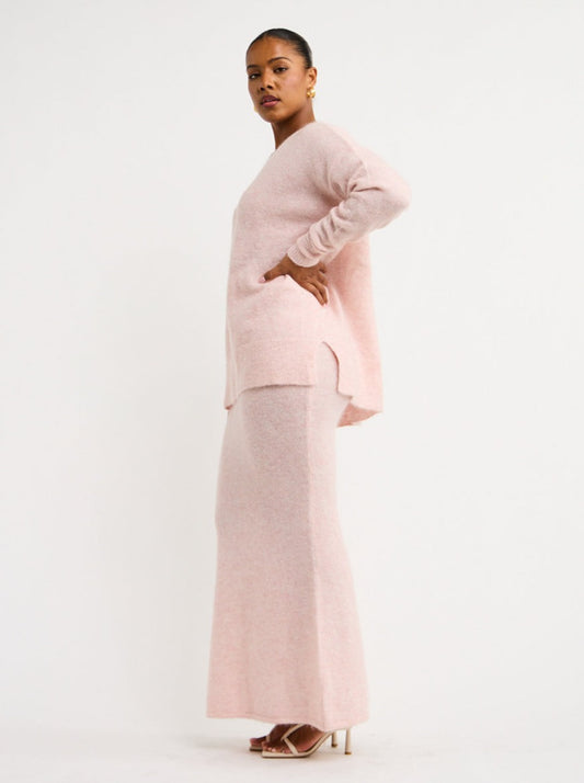 Transition with ease from a casual office look to a feminine weekend ensemble. Layer with the matching Mollie Knit Jumper in Light Pink by Suboo and enjoy the soft beauty of this luxe skirt.
