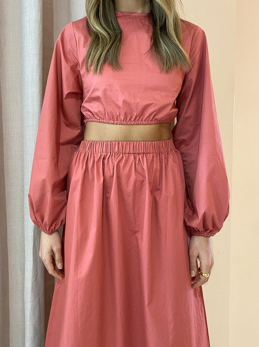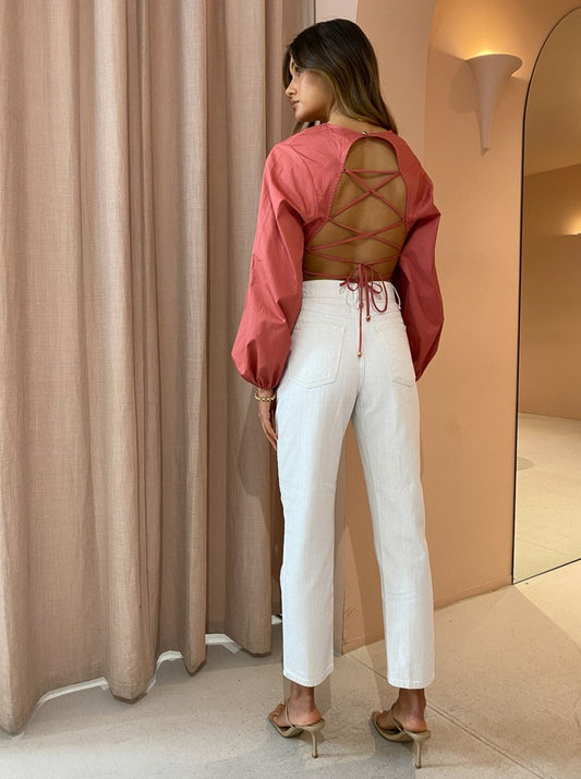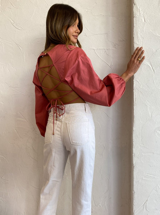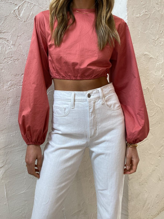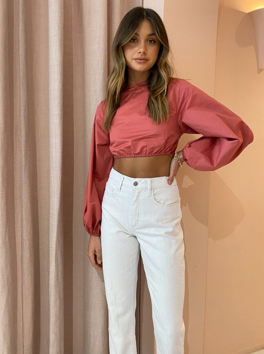 Crafted from a crisp lightweight cotton, the Rosanna Backless Top is cropped in length and features long blouson sleeves with elasticated cuffs.