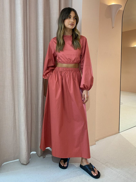 Coco Styling Tip: For the ultimate Co-ord look, complete the set with Suboo Rosanna Maxi Skirt in Wine and style with the Porter Bubble Ring in Gold and Alias Mae Soho Sandal in Black for endless comfort.
