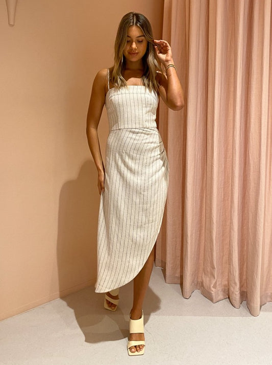 Third Form Picnic Stripe Tuck Up Dress in Straw Stripe