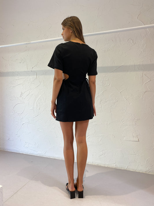 The Third Form Pressed Flowers Draw Side Tee Dress in Black is a classic LBD with a modern twist.