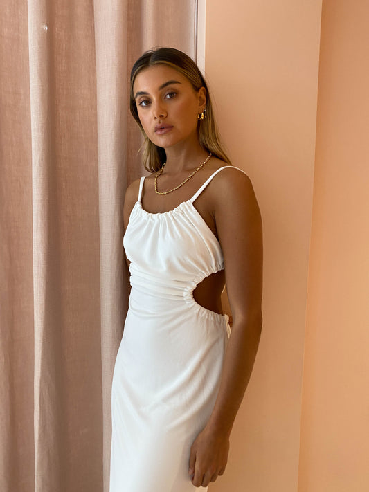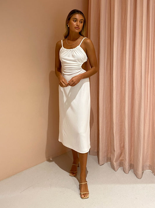 The Third Form Pull In Midi Dress in Off White takes on a fresh approach to your classic midi dress.