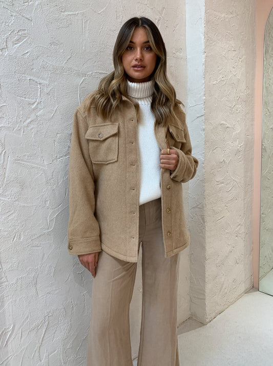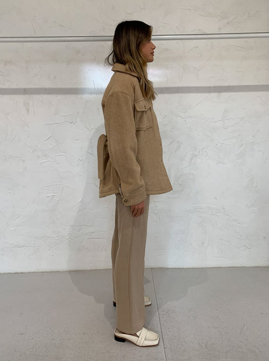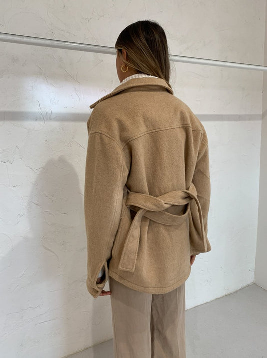 Wrap yourself day to night in the ever indulgent Trucker Wool Jacket in Oat from Third Form.