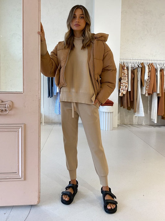 Coco Styling Tip: Complete the quintessential Coco tonal look, by matching back with the Camilla and Marc Sidney Knit Jumper in Suede and the Sidney Tapered Knit Pant in Suede.