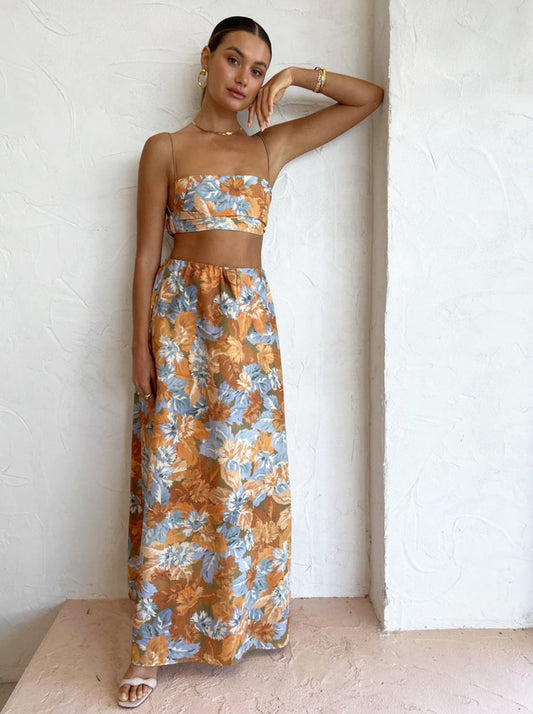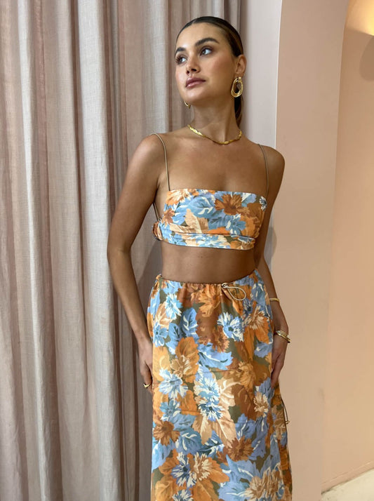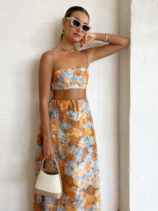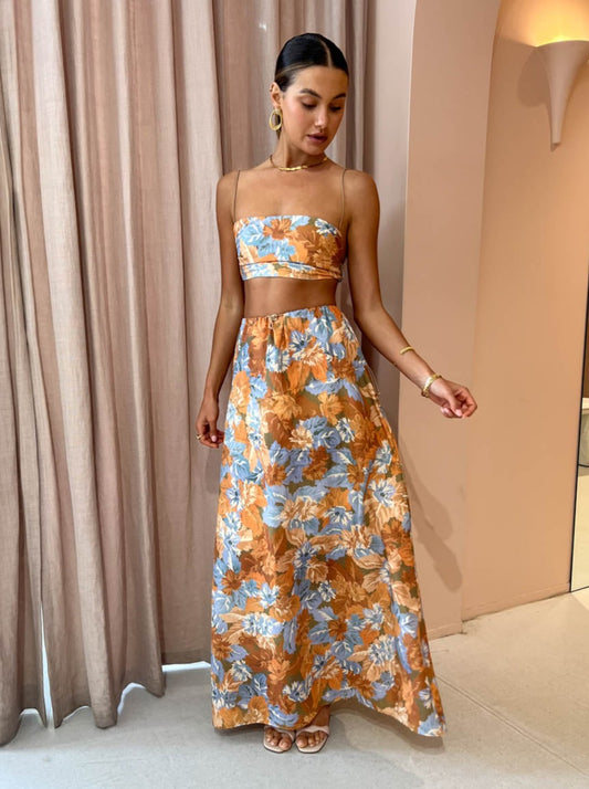 Glide effortlessly through your Spring Summer occasions with the TOJHÀ Dahlia Skirt in Desert Floral.