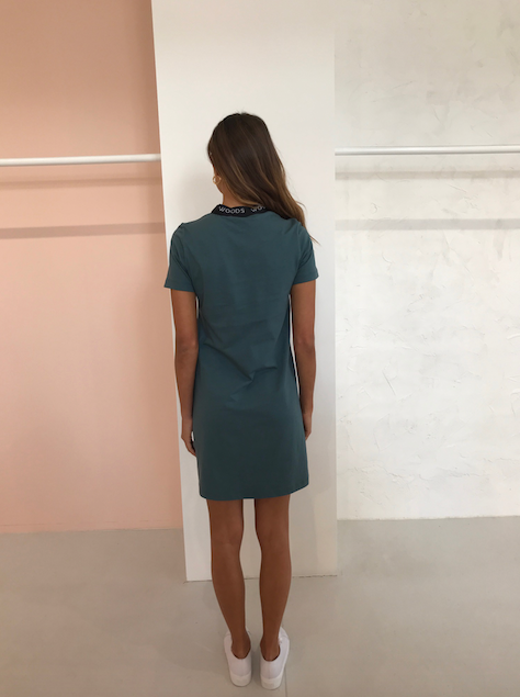 The Viktoria and Woods WOODS T Dress is crafted from a soft organic cotton jersey, certified by the Global Organic Textile Standard. A relaxed silhouette featuring an elasticised WOODS branded stand collar, for the ultimate sports luxe look.