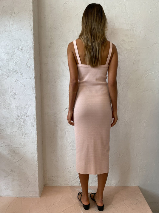 With the form fitting silhouette and classic Coco soft pink hue, this coveted midi dress will slip effortlessly into any Coco closet.