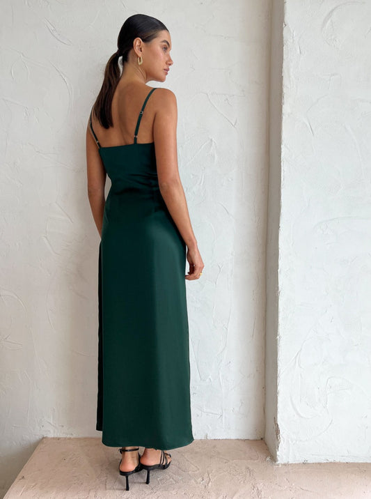 Crafted from a signature cupro fabrication, this maxi dress features a soft cowl neckline that finishes in a soft leg split.