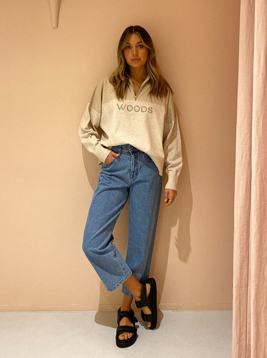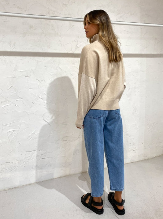 Coco Styling Tip: Wear on repeat with the Viktoria & Woods Woods Zip Knit in Oyster Marle, a pair of the Camilla and Marc Eden Fussbett Sandal in Black and finish with the Reliquia Xanthe Sleepers in Gold for everyday styling.