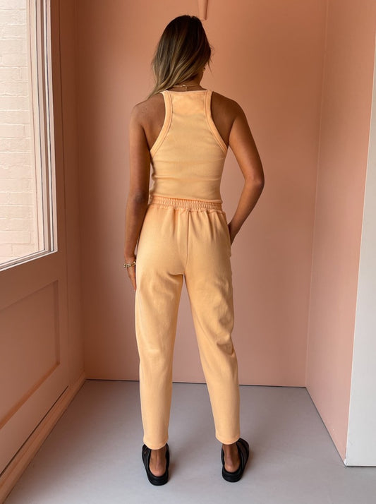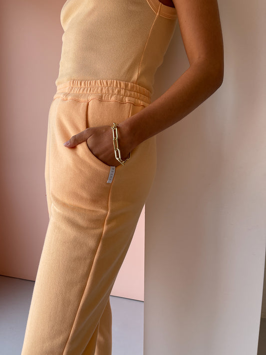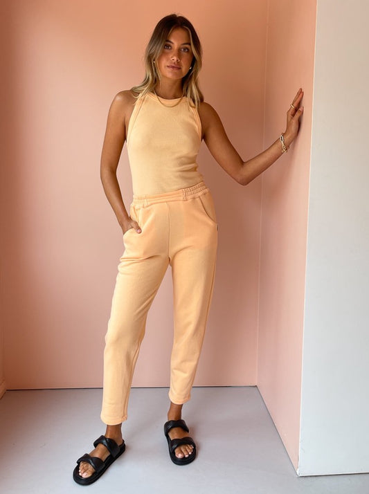 Relax in style! The Viktoria and Woods Power Track Pant in Nectarine are redefining luxury comfort.