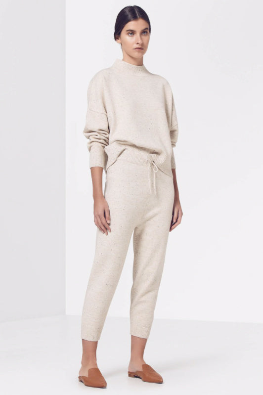 With a high neck and cropped fit the Vik and Woods Yellowstone Sweater pairs perfectly with the Distance Knit Pant in matching speckled marle.